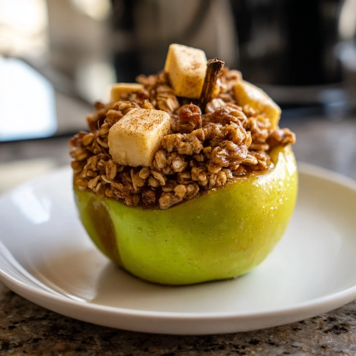 Tender apples filled with spiced oats and nuts, baked warm and perfect for a cozy afternoon delight.